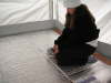 Maggie installing Reflectix in the Camper