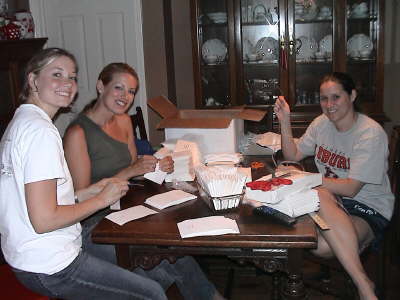 Kelli, Tiffiny, and Maggie making things for the wedding