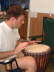 Bob playin g in a small drum circle in the lot at The Dead at Lakew ood